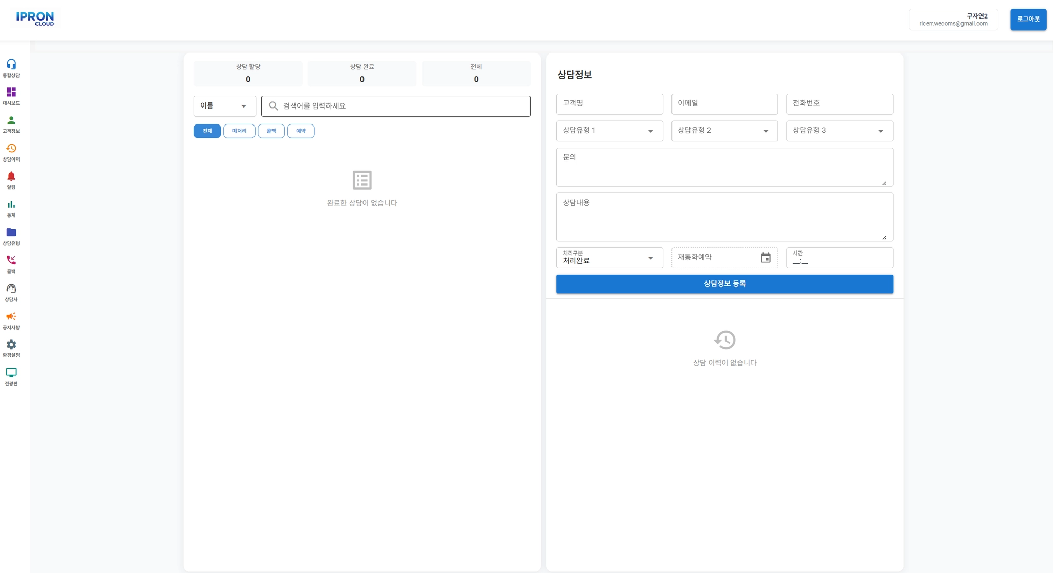 당일 로그인한 상담사 본인이 처리 완료한 상담 이력만 표시됩니다.