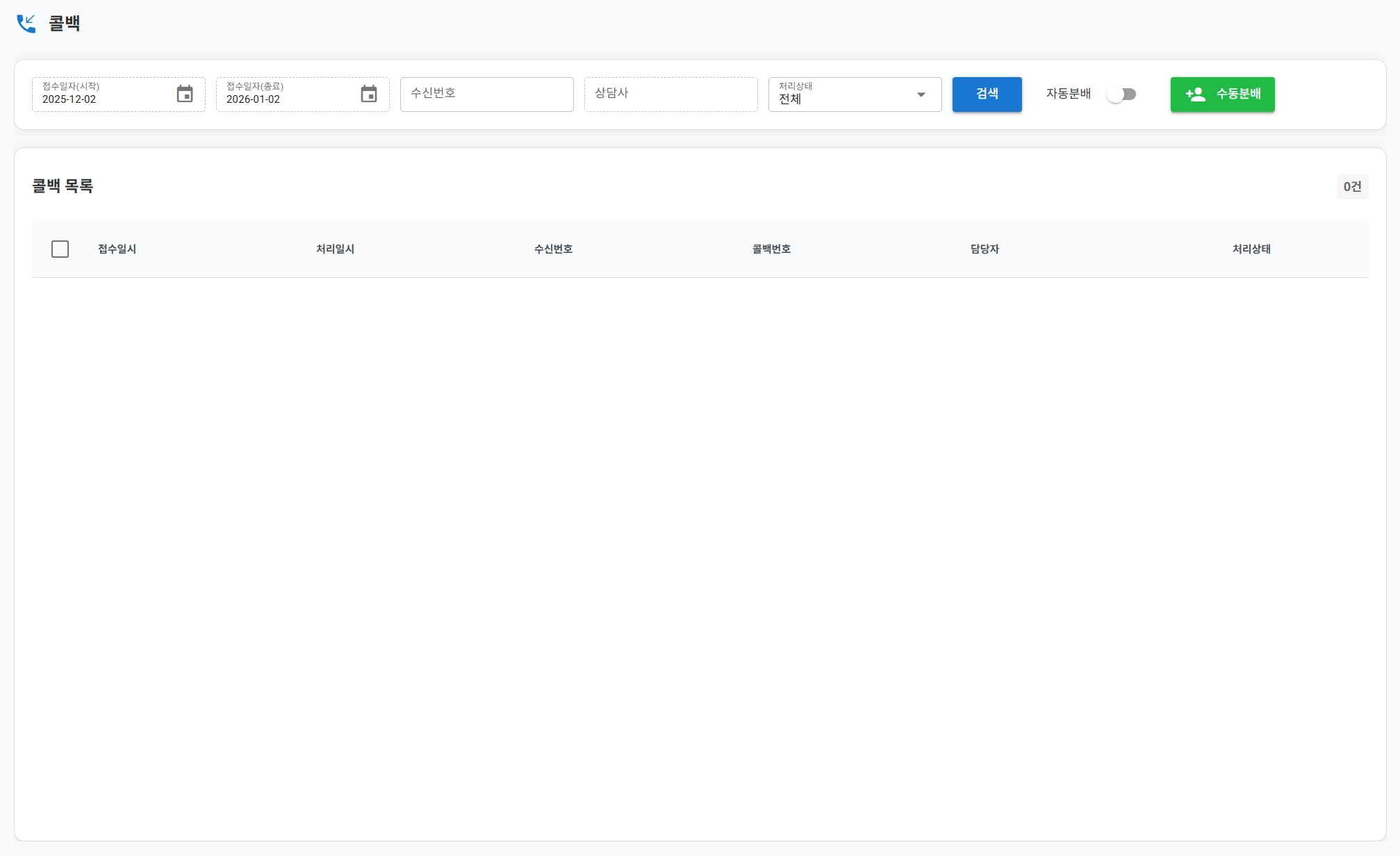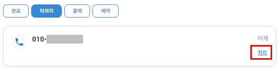 상담 이력 중 처리상태가 ‘미처리’로 저장된 상담 건이 표시됩니다.
