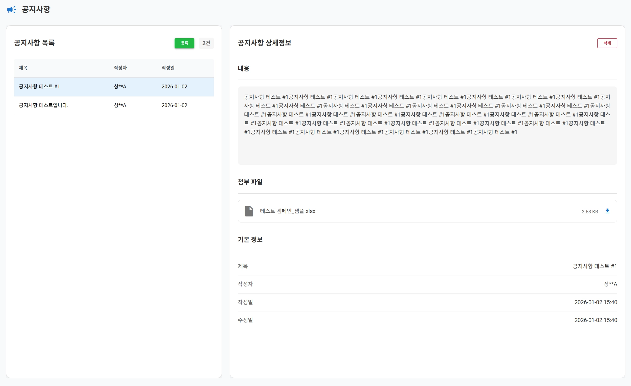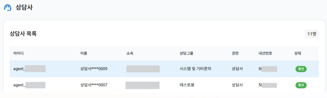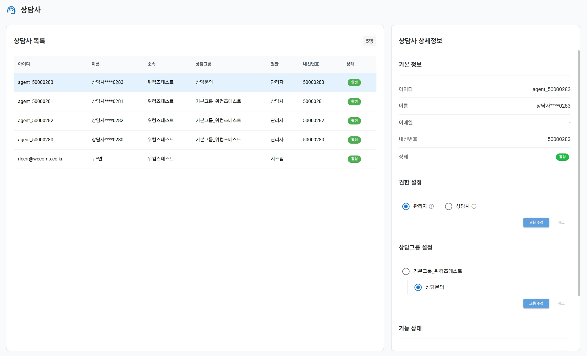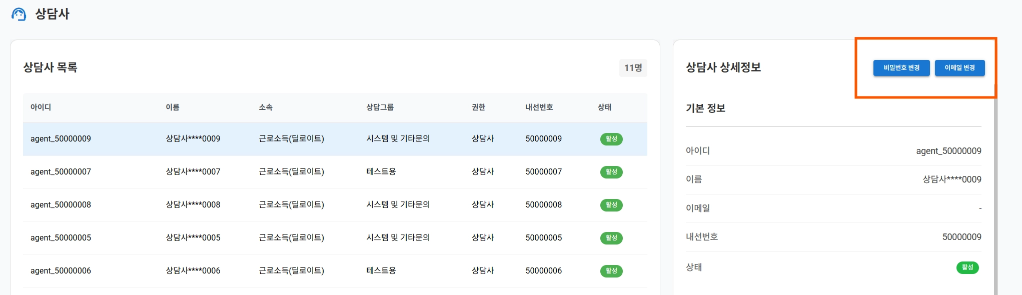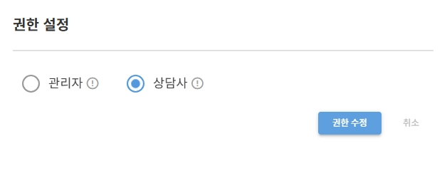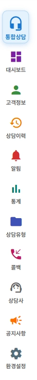 좌측 메뉴는 사용자 권한(상담사/관리자)에 따라 구별됩니다.