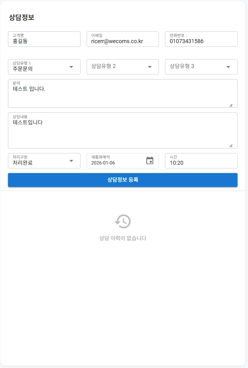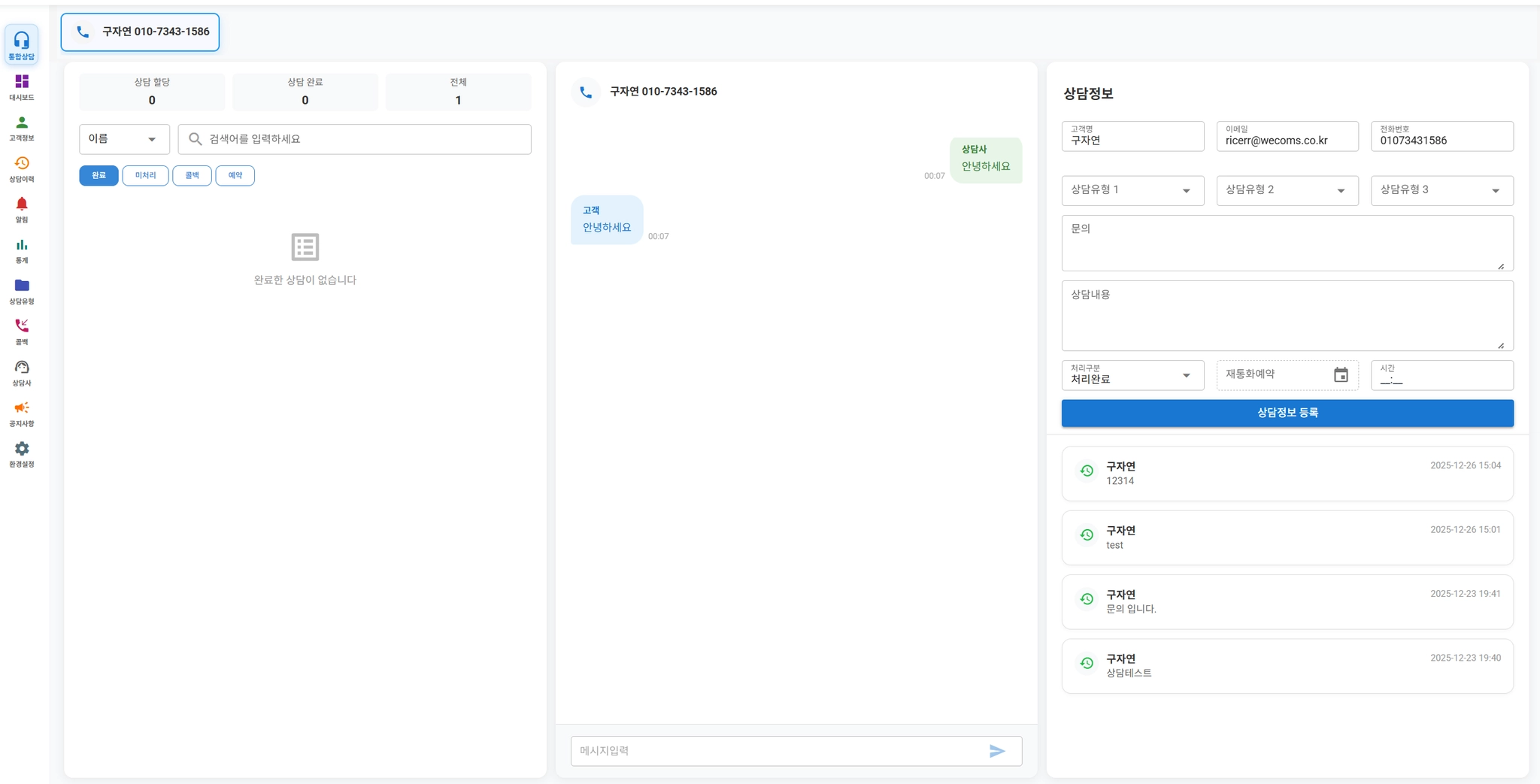 상담 이력 및 고객 정보를 관리할 수 있도록 제공되는 상담 전용 애플리케이션입니다.