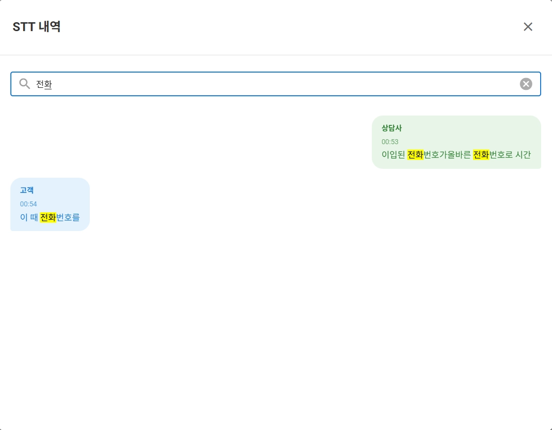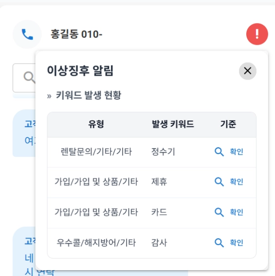 상담 중 특정 키워드가 감지되면 시각적으로 강조 표시됩니다.