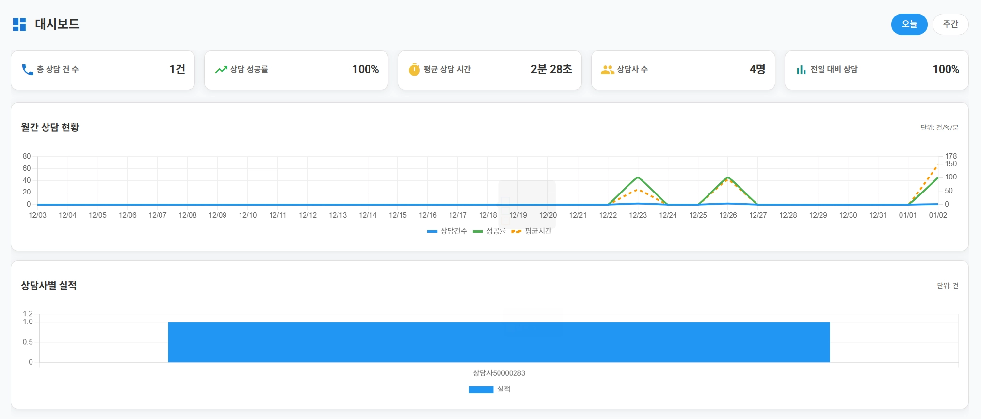 상담사가 금일 본인이 처리한 상담 내역을 빠르게 확인