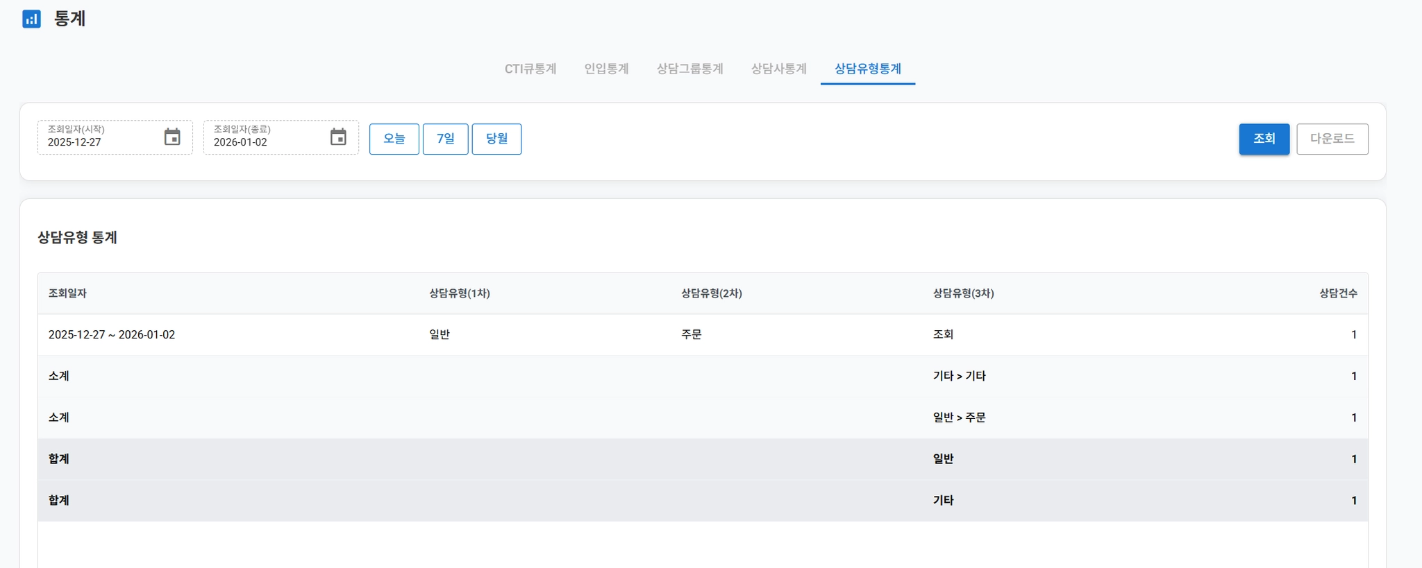 상담 종료 시 상담유형(1차 / 2차 / 3차) 이 자동 분류됩니다.