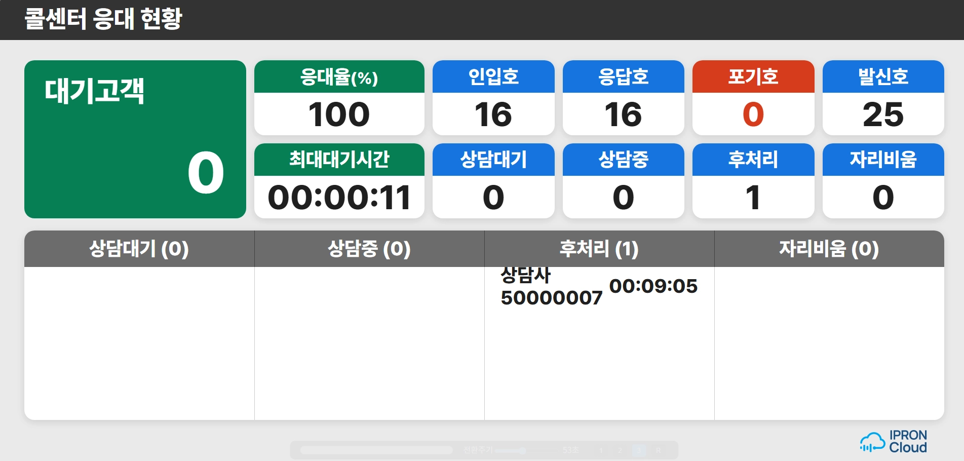 대기고객 : 현재 상담사가 소속된 상담그룹(큐) 기준으로 인바운드(음성) 대기열에 대기 중인 고객 현황을 확인하는 기능입니다.