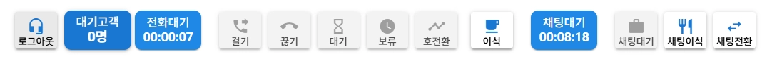 상태 | 로그인 | 로그아웃 | 걸기 | 끊기 | 대기 | 보류 | 호전환 | 이석 |