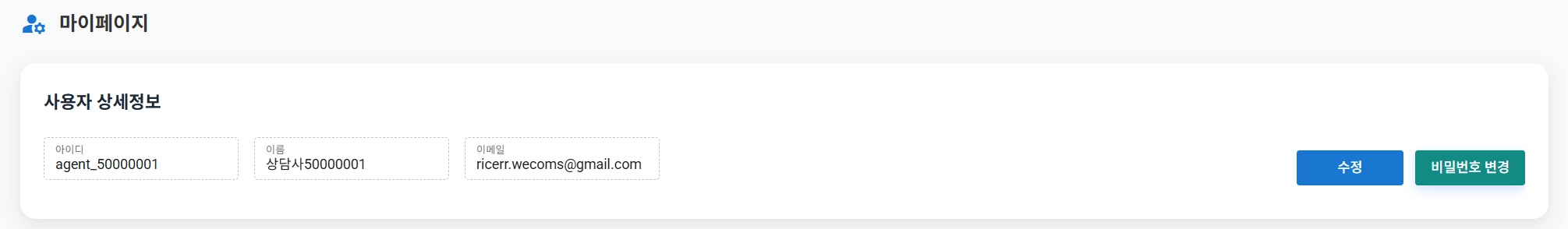 상담사의 아이디는 포털 가입자로 로그인 후 메뉴>상담사 메뉴에서 확인 할 수 있습니다.